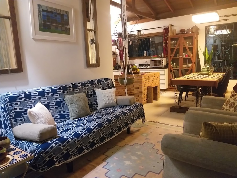 Casa de dois andares toda feita de madeira demolição (peroba e canela preta) com vista para o mar no andar de cima, área construída com com aproximadamente 150 metros quadrados, sala e cozinha conjugadas com fogão campeiro, 02 dormitórios, sendo 01 suíte, 02 banheiros, sala de tv, estúdio, área de serviço, espaço gourmet. Casa frente norte, ensolarada e bem iluminada. Terreno com 589,10 m², todo arborizado com arvores frutíferas (limão siciliano,lima,laranja,jaboticaba,abacate,graviola,roma,gabiroba,caju),espaço de horta plantas, ornamentais (buganviles, sapatinho da judia, hortênsias), próximo ao mar (trilha de 15 minutos com acesso a praia do Moçambique) rua calma e sem saida. Agende sua visita com nossos corretores. * Valor e disponibilidade a confirmar